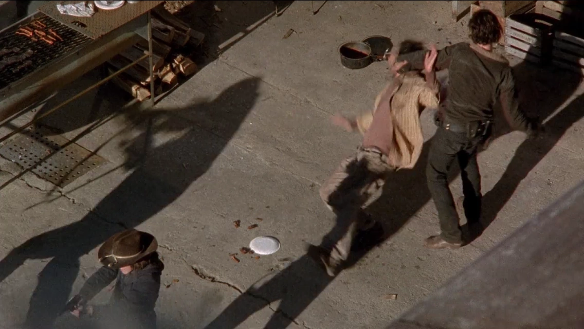 Алекс вместе с Гаретом показывает группе Рика Терминус. Когда у Рика появляются подозрения по поводу вещей обитателей Терминуса, он берёт Алекса в заложники. После недолгих попыток переговоров, Гарет приказывает застрелить Рика. Житель Терминуса стреляет, но Рик успевает отойти и пуля попадает Алексу в голову («А»).
