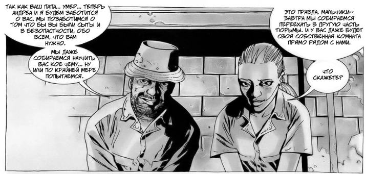 Дейл и Андреа разговаривают с Беном и Билли и говорят, что теперь они будут о них заботиться. Бен спрашивает, являются ли они их новыми мамой и папой, и Дейл отвечает, что они могут называть их так, если хотят.