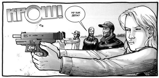 Андреа учит александрийцев стрельбе из оружия, они тренируются на зомби. Андреа показывает мастер-класс, как убить зомби, подпустив его как можно ближе. После этого Рик и Андреа долго разговаривают о прошлом и о людях, которых они потеряли. Они ужинают вместе.