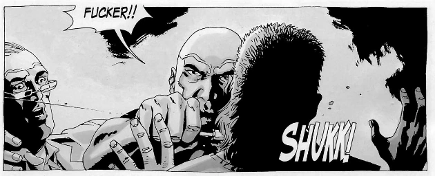 Гарольд выходит на арену в Вудбери и дерётся с Юджином, в то время как Губернатор отрезает руку Рику.