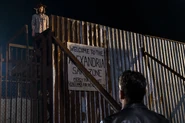 - На второй минуте у стен Святилища видны аккуратно наваленные кучи ходячих, некоторые из которых ещё "живы" и дёргают конечностями. Вероятно, это заслуга Юджина. Но как он это сделал, в серии не раскрывают.
