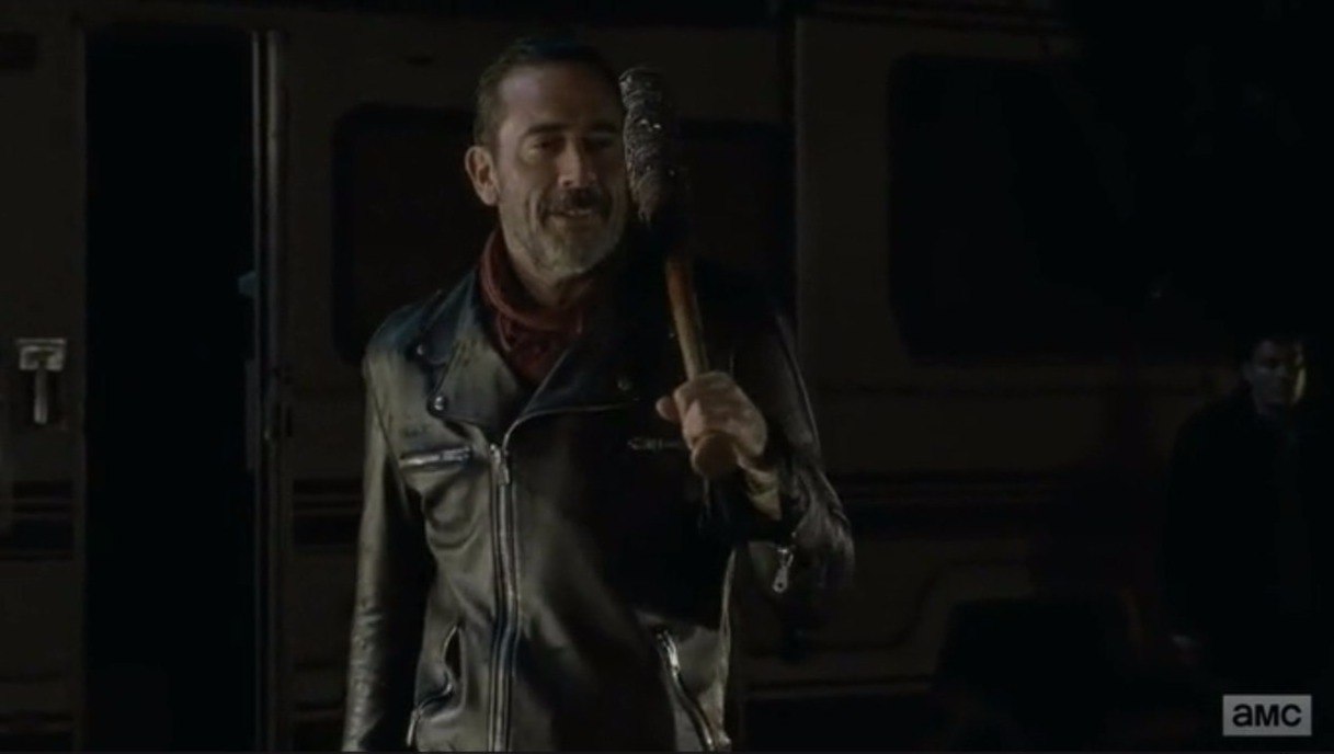 После этих слов лидер Спасителей наносит первый удар, камера мутнеет, Ниган комментирует это фразой: «Вы посмотрите! Держится, как чемпион!» и продолжает бить, кроша кости, раздавливая плоть.