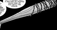 Покинув свой город, Ниган путешествует. Он присоединяется к группе, лидер которой вооружён битой. Она сразу понравилась Нигану. Когда Пол и вся его группа погибла, Ниган подобрал биту, оценив её удобство и эффективность. Позже он обернул её колючей проволокой.