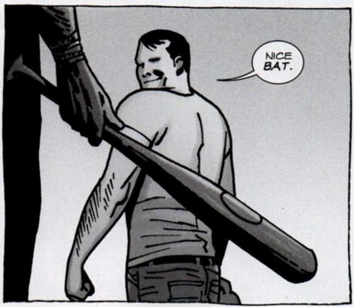 "Я называю свою биту Люсиль. У Люсиль на конце завернута колючая проволока. И она офигительна. Кому же будет оказана столь большая честь?"