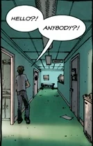 Рик пробуждается из комы и падает с кровати. Он зовёт на помощь медсестру, но никто не приходит. Бродя по заброшенным коридорам больницы, он находит лифт, из которого вываливается недоеденный труп. Испуганный Рик начинает звать на помощь, но никто не откликается.
