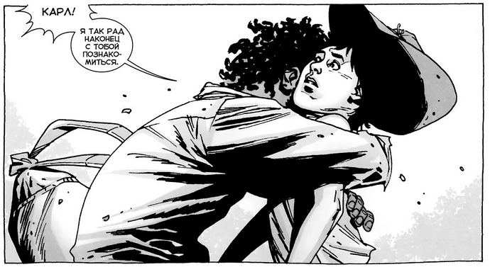 После смерти Дуэйна и встречи с Риком Морган проявляет повышенное внимание к Карлу. Он обнимает его при первой встрече, отмечая, что очень рад с ним наконец познакомиться. Морган проявляет повышенное внимание к Карлу, тому это не нравится.