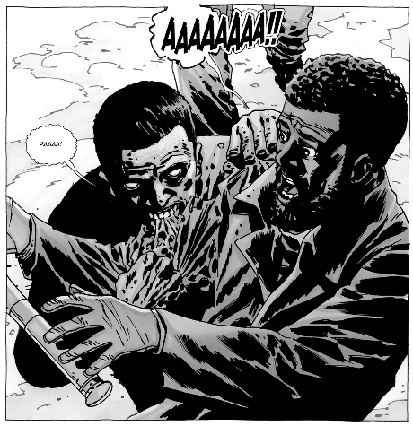 - Морган умер так же, как и персонаж игры Ли Эверетт, они оба были укушены в руку, затем отрезали её, чтобы остановить инфекцию (Зависит от принятых решений), оба разговаривали с ребёнком перед смертью.