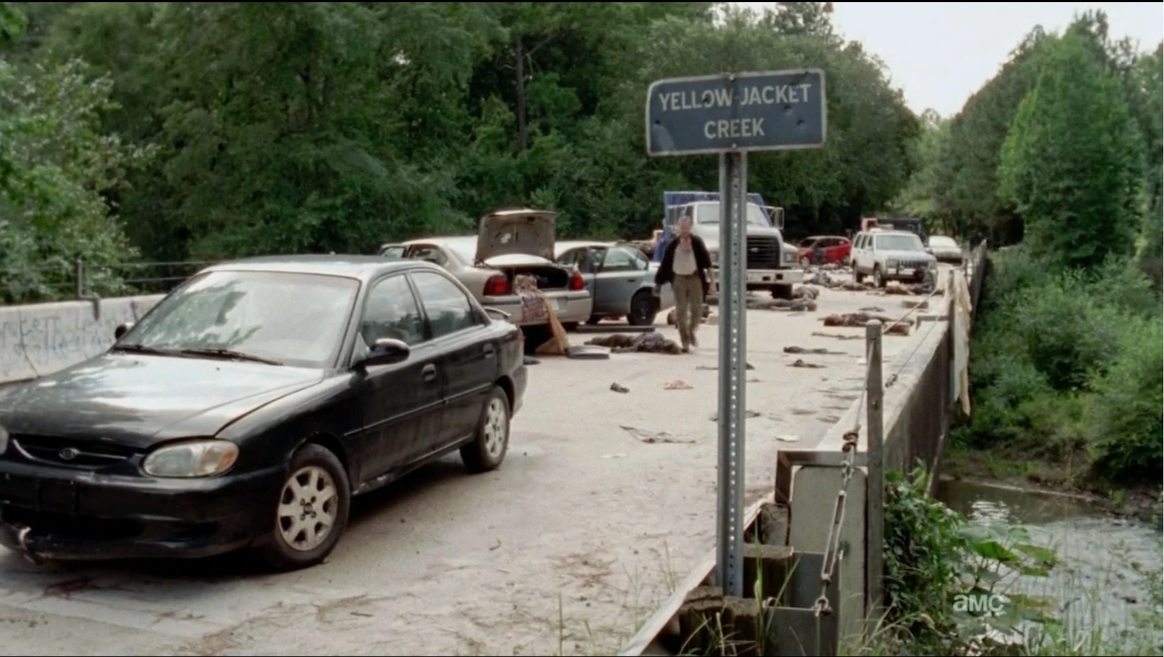 Когда началось нашествие зомби многие жители пытаясь спастись создали пробку на мосту и автомобили заблокировали движение.