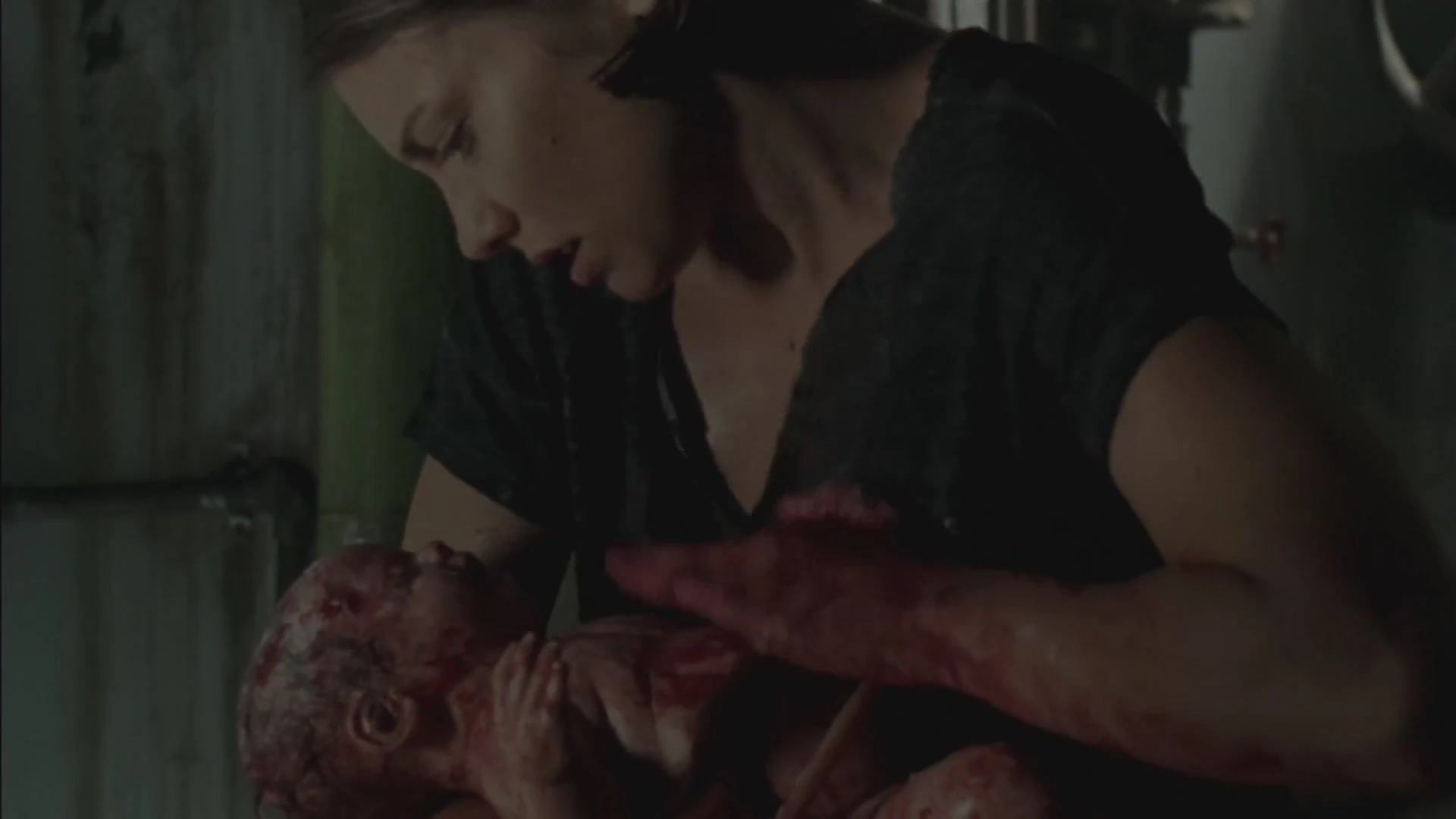 Во время нападения зомби Мэгги, Карл и Лори бегают по лабиринтам тюрьмы, пытаясь спастись. Неожиданно у Лори начинаются схватки и они прячутся в котельной. Лори понимает, что для рождения ребёнка нужно кесарево сечение. Мэгги слёзно умоляет Лори не делать это, так как у неё нет медицинских препаратов для её спасения. Однако Лори позже всё-таки хочет сделать кесарево. Мэгги извиняется перед ней и Карлом за то, что она собирается делать. Она со слезами на глазах берёт нож Карла, режет по шраму Лори и вытаскивает ребёнка. Сначала он молчал, но Мэгги похлопала по его спине и он заплакал. Перед тем как уйти, Карл стреляет в голову своей матери. Они направляются к другой части группы, где сообщают Рику о смерти его жены, от чего он заплакал.
