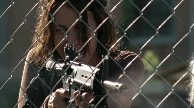 Когда Дейлу зомби разорвал живот, Мэгги с остальными идут к нему. Она становится свидетелем того, как Дэрил стреляет раненому в голову, чтобы прекратить его страдания.
