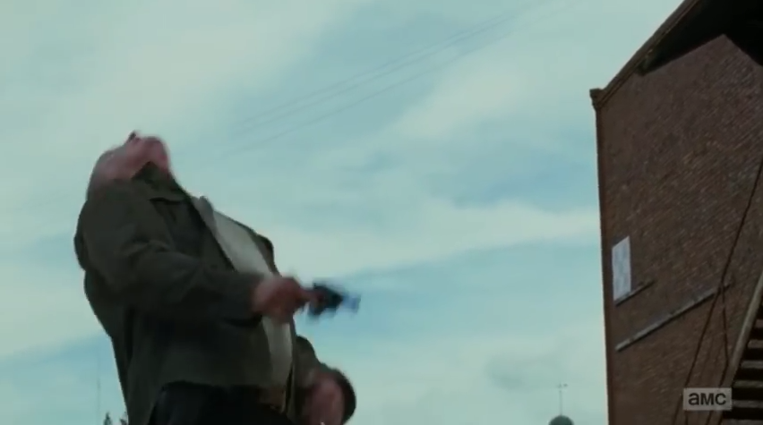 Морган предлагает ему выбор: уйти или быть убитым. Роман отказывается от выбора и хочет выстрелить в Кэрол, но Морган опережает его.