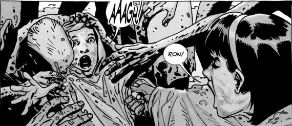 - Рон - первый ребёнок в комиксе, убитый зомби, но не превратившийся после смерти.