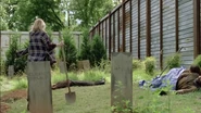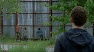 В это время Мэгги и Аарон идут к внутренней части стены Александрии, чтобы стереть имена Гленна и Николаса с мемориальной стены в надежде, что они могут быть ещё живы.
