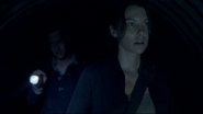 Мэгги и Аарон идут через канализацию, которая расположена под стенами Александрии, где они отбиваются от атаки пары ходячих.
