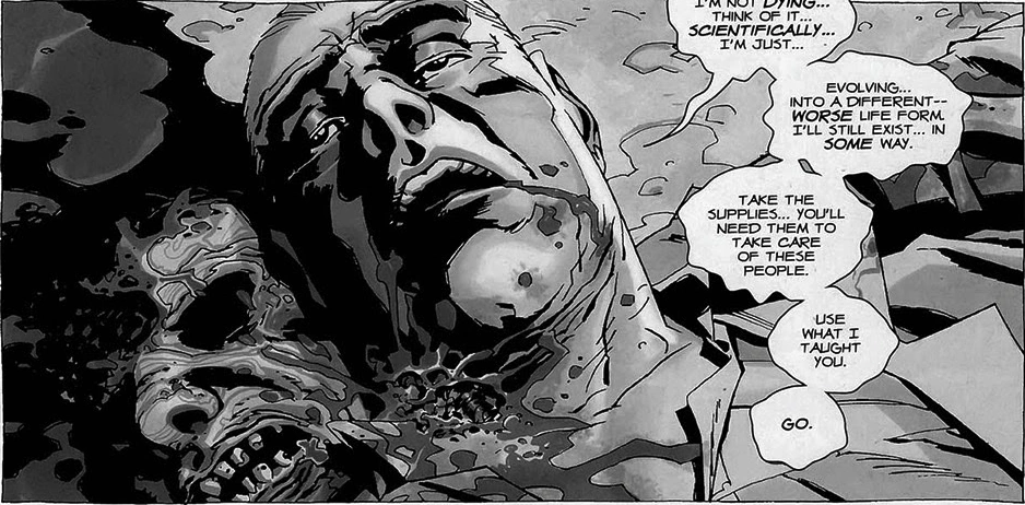 Как только группа беглецов покинула периметр Вудбери, он был укушен зомби. После того как доктора кусает зомби, Элис убивает ходячего. Доктор говорит ей, чтобы она воспринимала его смерть с научной точки зрения - что он перейдёт в другую, худшую форму жизни. Он просит Элис взять припасы и помнить всё, чему он её учил.