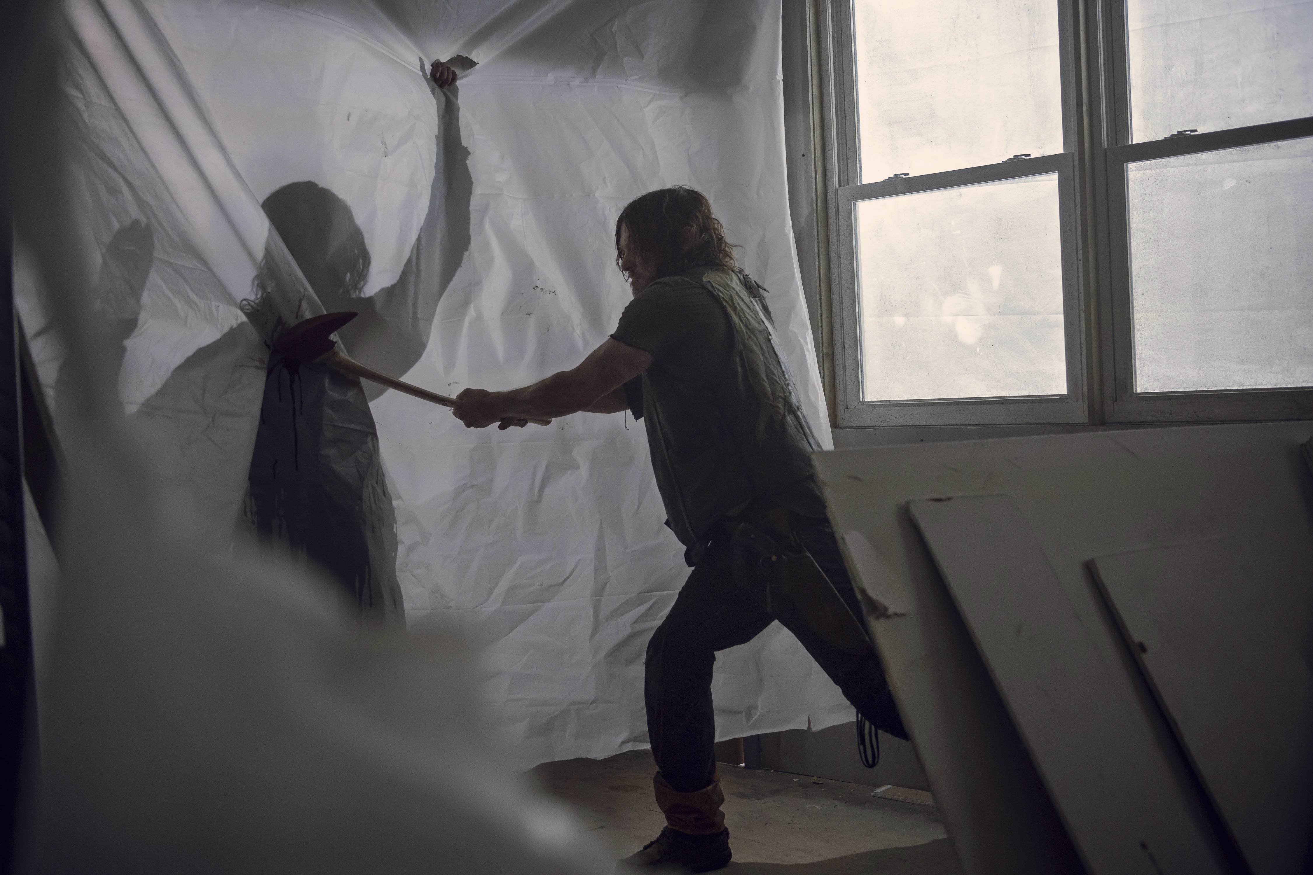 Генри сбивает одного из них Шепчущихся, Конни подстреливает другого. Дэрил направляет свой арбалет к главному входу, в то время как Бета и несколько его людей залетают в комнату, используя дверь в качестве щита. Дэрил, Конни и Генри расправляются с несколькими Шепчущимися, однако Генри ранят в ногу. Тут же появляется Пёс Дэрила, которого выпустила Лидия.