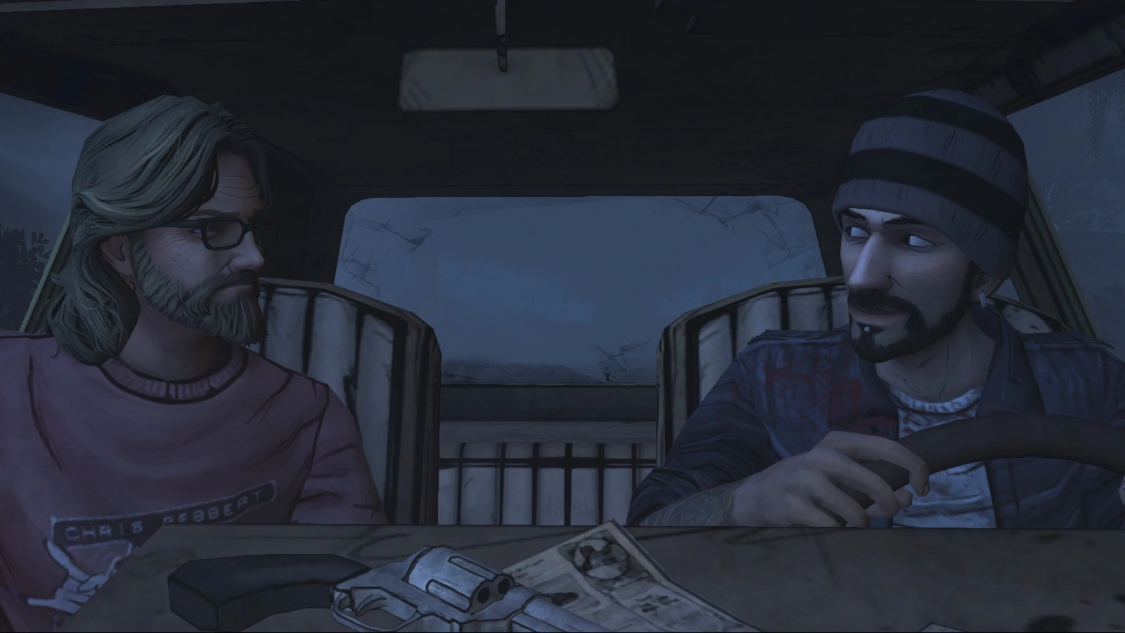 Уайетта и Эдди на машине преследует Нэйт. Эдди утверждает, что застрелил его друга. Далее, в зависимости от того, возьмёт ли игрок пистолет у Эдди, определяется, кто будет стрелять в Нэйта. В любом случае машина Нэйта съезжает в кювет. Уайетт и Эдди решают спрятаться в лесу. В густом тумане, заболтавшись о происходящем, они сбивают полицейского. Эдди просит Уайетту осмотреться через окно машины, но тот говорит, что ничего не видит из-за тумана. Эдди настаивает, что это был человек, и предлагает сыграть в "Камень-ножницы-бумага", чтобы решить, кто выйдет из машины.