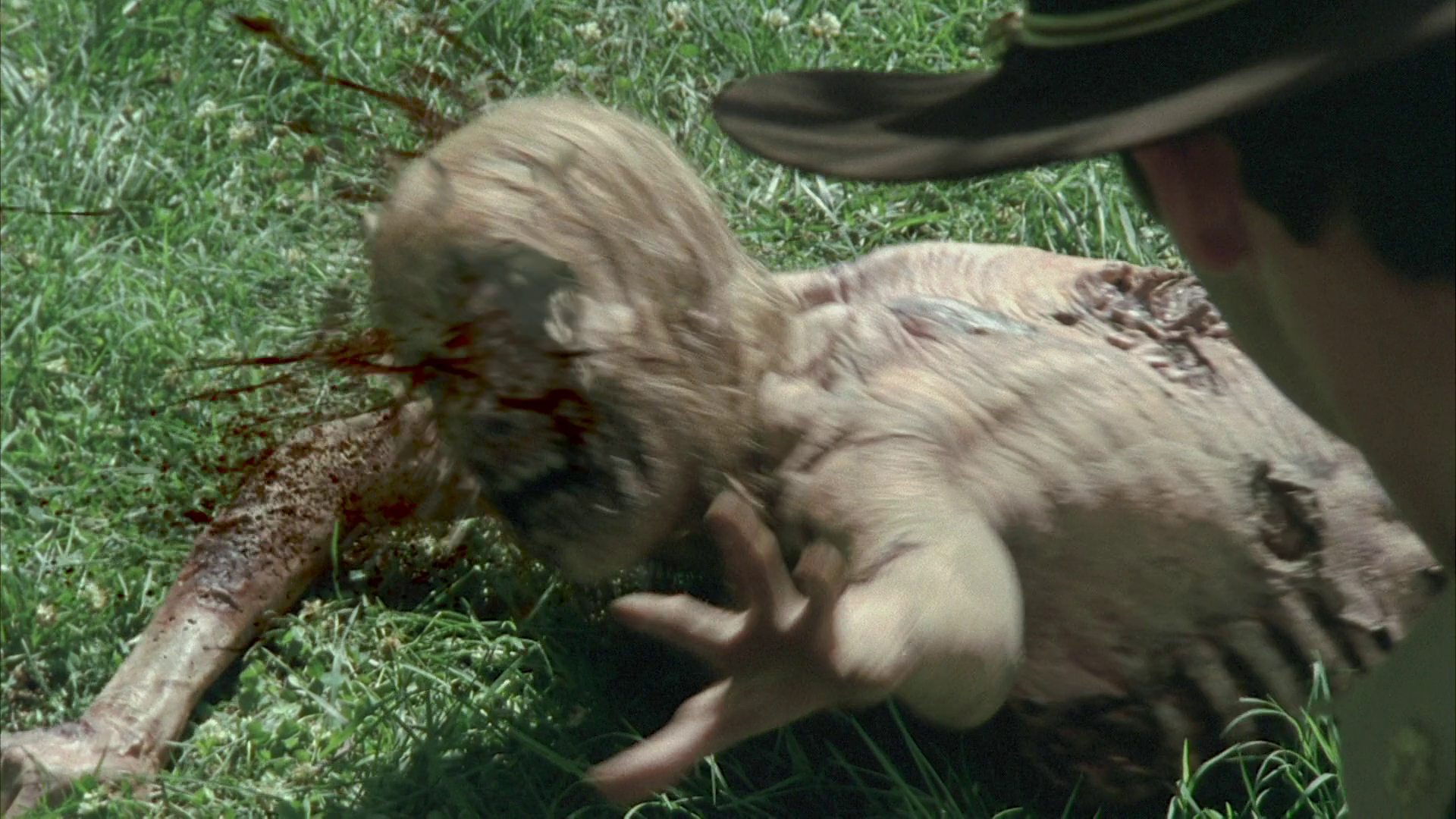Позже Ханна превращается в зомби. У нее осталась только верхняя половина тела. Она ползет по траве. («Все умирают»).