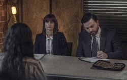Yumiko is put back in the interrogation room, with the interrogators apparently being the ones in charge. Clark says she isn't sure why Yumiko is talking to them, since she had already been assessed, but the latter asserts that she was the one assessing them instead. She goes on to deduce that their community is large and organized, with a bureaucracy the interrogators are part of. She also believes the interrogators had similar jobs before the apocalypse, guessing that Clark was a forensic psychologist and Evans an academic researcher. With their role being to assess threats to their community, Yumiko determines that the reason the interrogators asked about their past lives is because someone above them determined that was a good position from which to judge who they were in the present. She also deduces that their currency is the US dollar, as they hounded one of her companions over a $2 bill, with the reason for this being their need to strictly control the amount in circulation. Yumiko also believes the Commonwealth uses old currency as a symbol to remind people of the days before the fall. While she understands their need to determine whether she and her companions are an asset or a liability, she asserts that the Commonwealth needs to justify its existence, too. Taunting her interrogators, Yumiko hypothesizes that manual laborers are more valuable nowadays than someone who can write endless lists of questions. At the end of the day, they still need to rely on their gut instinct. She pegs the interrogators as people who follow rules, which she likes, as she was a lawyer once, and goes on to proclaim that they need her. Yumiko says that she has reason to believe her brother is alive in the Commonwealth and, thus, requests expedited processing for her and her group. With that, Mercer enters the room, and offers Yumiko a cup of coffee.