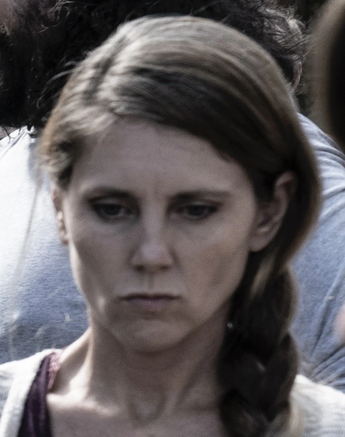 Adrienne watches from the crowd as Ezekiel declares they've finally accomplished Rick, Carl, and Jesus' dreams of reuniting the communities. "Let the fair of a new beginning begin!" Ezekiel says as everyone celebrates and applauds. Adrienne then enjoys the fair and socializes with the people of the Coalition. That night, Adrienne attends the theater and watches the movie with other fair attendees.
