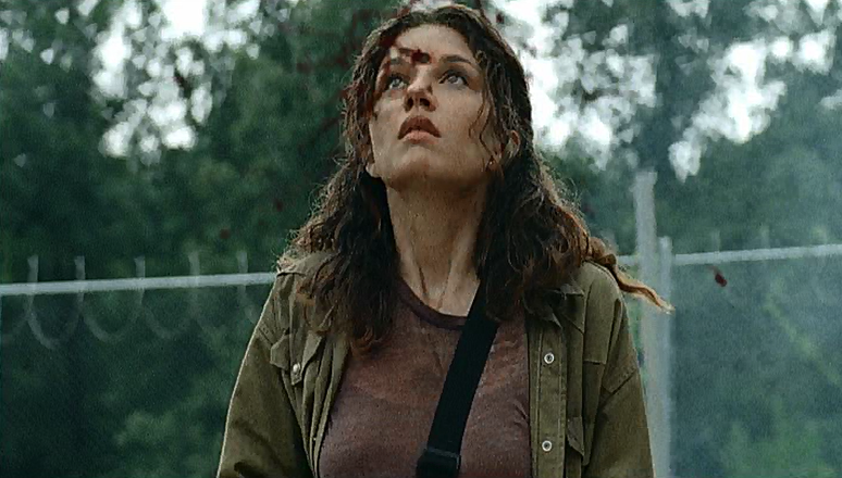 Alisha's corpse can once again be seen lying in the courtyard as Glenn Rhee rushes out of the prison.