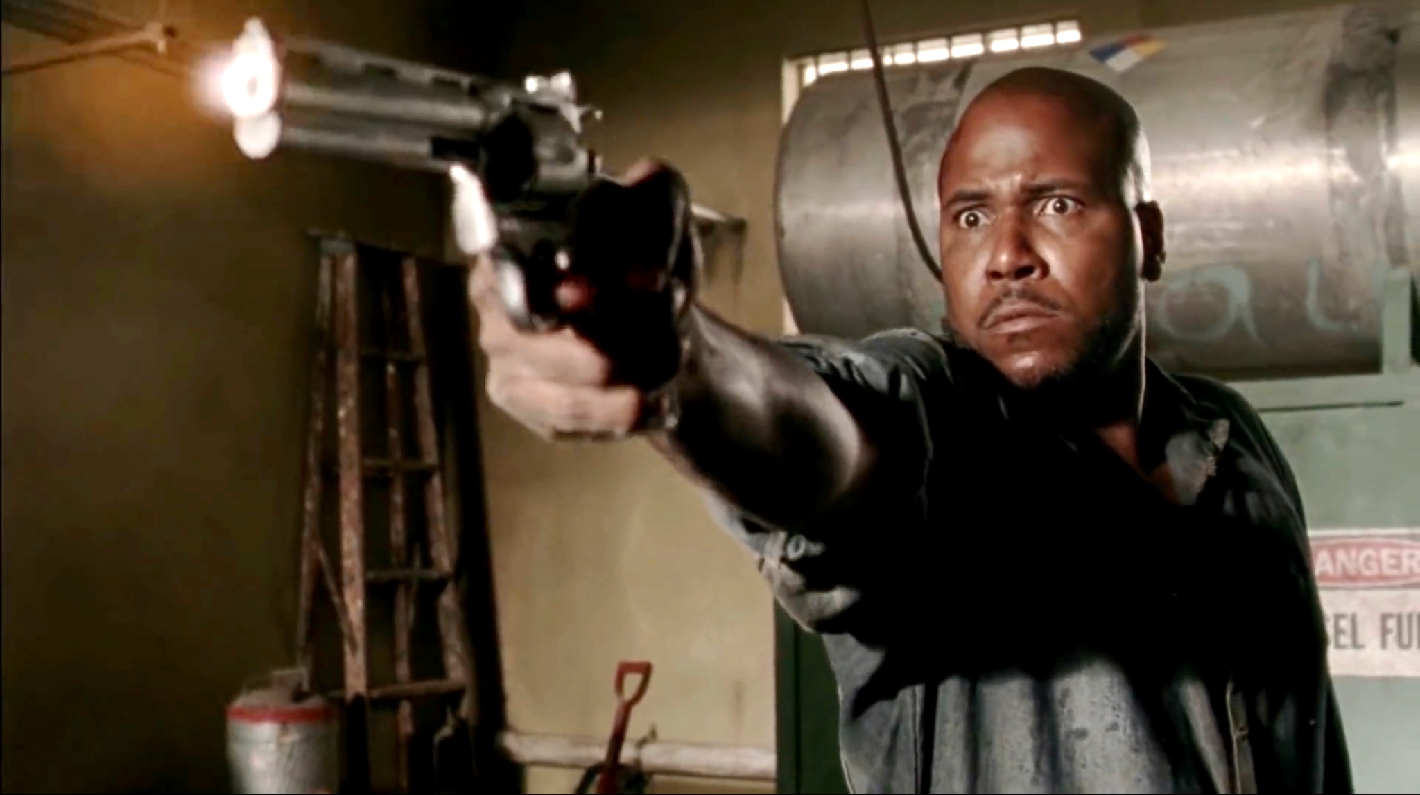 After leading a horde of walkers to the prison, Andrew attacks Rick in the prison's generator room. During their scuffle, Andrew kicks Rick's gun out of his hand, which is picked up by Oscar after he throws a barrel at Andrew's head.