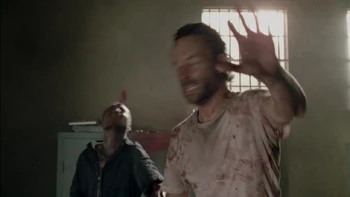 Later on, after walkers begin to flood the prison, the prison's alarms are activated, and Rick, Daryl and Oscar go to shut them down before more walkers arrive. While Daryl is busy holding a door shut, and Rick and Oscar are shutting the alarms down, Andrew appears, revealing that he is the mysterious figure (also from the episode "Sick") and that he escaped from the walkers Rick left him in. He then tries to strike Rick with an axe, but misses.