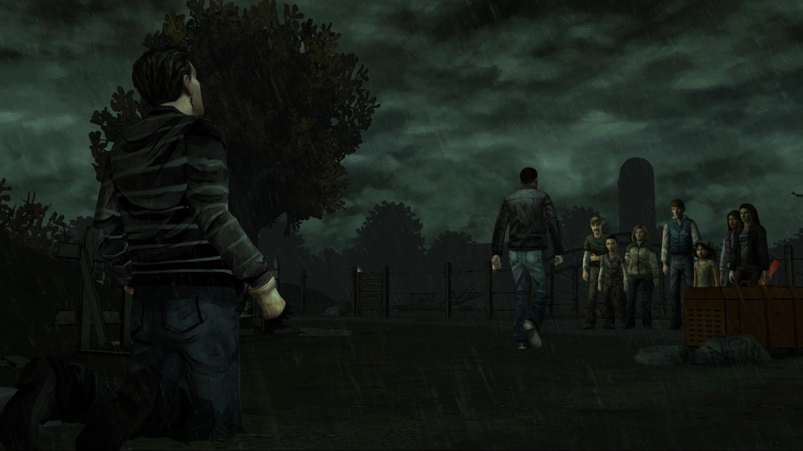 Later, having dealt with Danny and Brenda, Lee runs into Andrew, who has taken Duck hostage, and accuses Lee of ruining everything for him and his family; he then shoots and wounds Kenny as he attempts to free Duck. He is, however, distracted when either Doug targets his laser pointer at his eyes or Carley takes a shot at him and grazes his ear. Lee goes for Andrew's rifle, and squares off against him in a hand to hand fight with Andrew at first having the upper hand as he attempts to murder Lee by shoving his face into the electrified fence, but he is either shot at the last second and wounded in the shoulder by Lilly or stopped by Lee breaking free (depending on his relationship with Lilly). Lee can then viciously beat Andrew with his bare hands, almost killing him, before he stops by his own account or is told to do so by Doug/Carley, and walks away. If Lee decides not to punch Andrew or stops punching him too soon, he will get uppercutted and will have to push him into the fence. Lee then takes his gun. If Andrew was beaten in submission, he gets up on his knees with great difficulty, and angrily challenges Lee to come back and finish what he started, telling him that he "ain't shit", and threatens him with the wrath of his mother and brother. Lee can then imply or outright state that his family is dead or dying, which causes Andrew to break down, screaming in sorrow. Lee can then decide to either kill him by kicking him into the fence/shooting him in the head, or spare him and leave him to his fate as walkers overrun the farm.