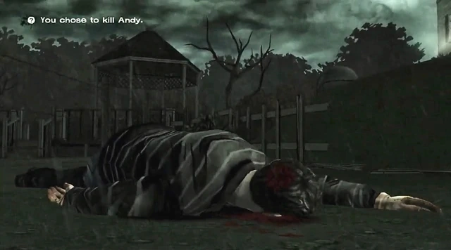 Kick Andy into the electric fence (Dead): If Lee punches Andy over and over, Andy is left bloody and bruised on the ground as Lee begins to walk away. However, Andy begins to taunt Lee, and Lee has the option to kick him into the electric fence and electrocute him.