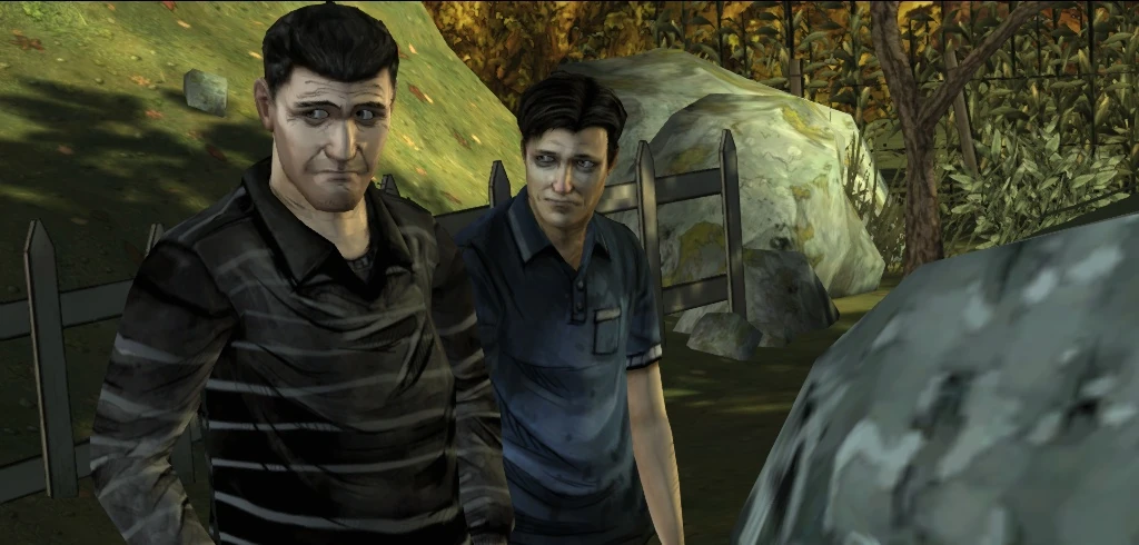 Shoot Andy (Dead): If Lee fails to punch Andy when he pins him down, Andy manages to break free and begins to punch Lee back. Lee manages to break free and then is about to be grappled by Andy, but Lee pushes Andy into the electric fence. Lee then picks up Andy's rifle and begins to leave until Andy taunts him. If Lee decides to shoot him, he goes directly for a headshot and shoots Andy in the head, killing him instantly.