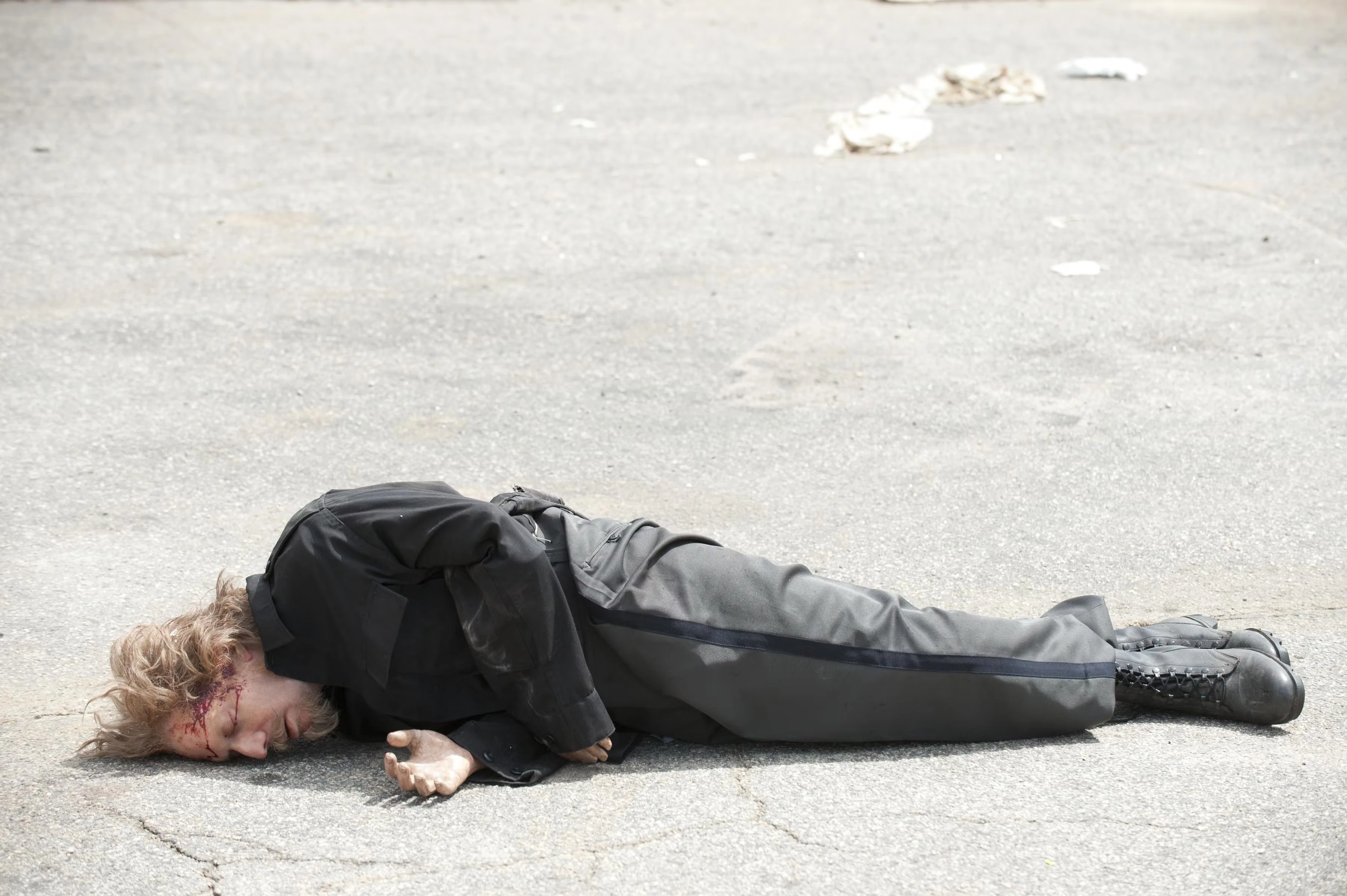 During a conversation with Carol about prison life, Axel is shot in the head from afar by The Governor. His body is then shot multiple times as Carol is forced to use it as a shield from the hail of bullets.