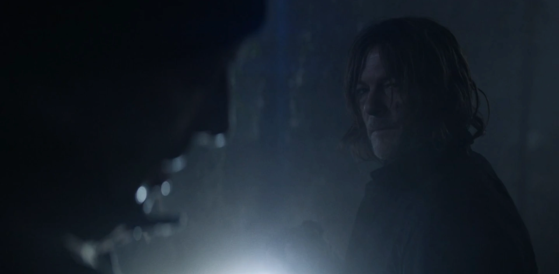 At night, Laurent prays, asking for God to look over Daryl's friends because Daryl doesn't know how to pray and asking for God to let him be strong like Daryl is strong. Azlan explains that his pocket watch saved his life and Daryl asks about Le Havre, but Azlan reveals that Genet controls the port in Le Havre. However, Azlan promises Daryl that the Union of Hope's leader Losang will help him to secure a boat home. Azlan is interested in Daryl, calling him a lone wolf who only wants to get back to his pack. Daryl explains that he had made a promise, but Azlan tells him that sometimes even a man's promise can get overwhelmed by a connection to other people or a larger cause. Daryl notes that when a man dies in someone else's war, it's his kids that suffer and it gets passed down to their kids and eventually, no one even remembers what the underlying cause that everyone was fighting for was. Daryl admits that causes were never really his thing. "When I first got to the Nest, I had just lost my wife and son. All I wanted to do was die. Losang asked me to fix this watch, told me how important it was. I worked on it, day and night, for months. And when I finally got it running, he told me it didn't matter anymore. Because I had found a reason to live," Azlan explains. Thinking on Azlan's words, Daryl watches Laurent as he finishes up his prayers.