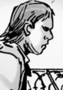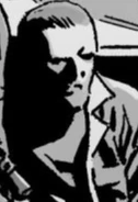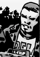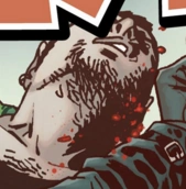 - Issue 97 - Sent by Negan to stop Rick and his group, but fails when he is shot in the head by Andrea. His deceased body is later devoured by walkers after Rick's group leaves.
