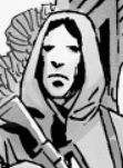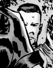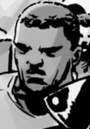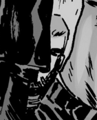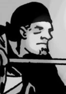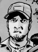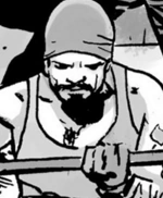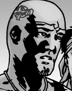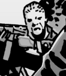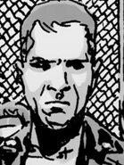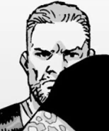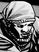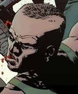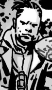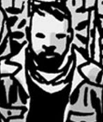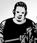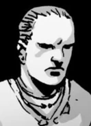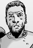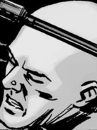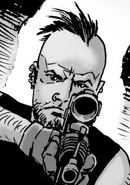 - Issue 97 - Sent by Negan to stop Rick and his group, but fails when he is shot in the face by Andrea. His deceased body is later devoured by walkers after Rick's group leaves.