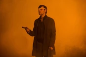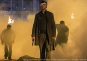 "The Suicide King" | The Governor, holding his Beretta 92SB Nickel while walking through the smoked arena, from a different angle. |