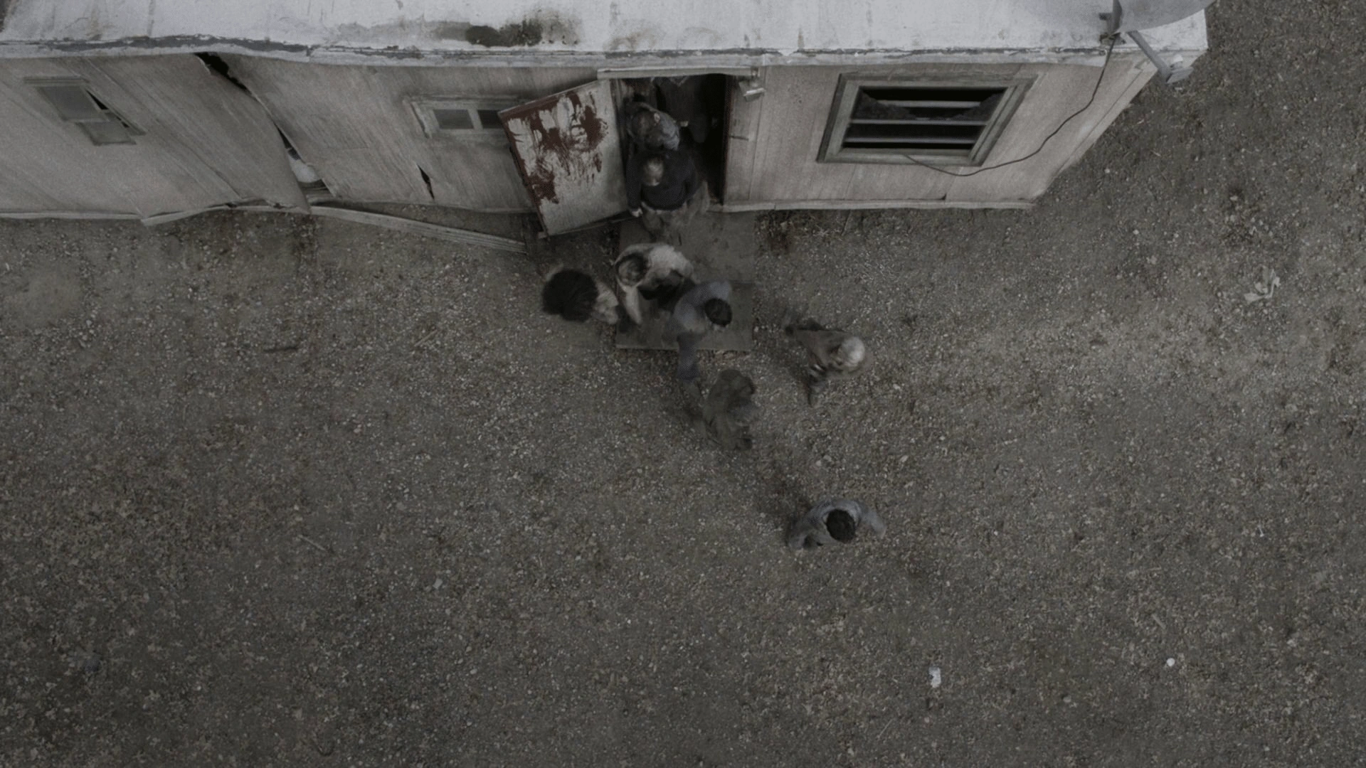 After the walkers are let out of a locked trailer home by John, Bill is devoured.