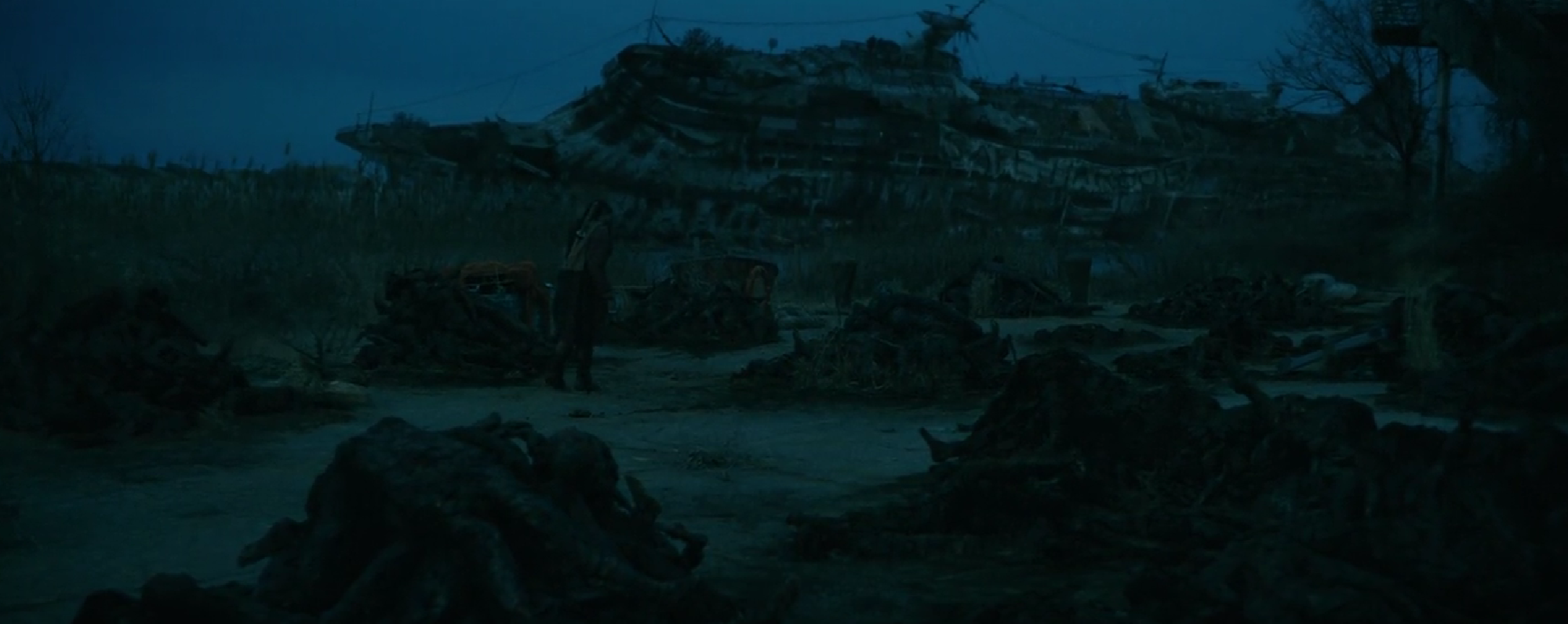 At some point, the shipyard was transformed into a safe zone with a sign being posted on a beached cruise ship reading "SAFE HARBOR." It was also the last location in Boat 672's log book. However, the shipyard suffered an attack from an unknown hostile group that led to everyone living there being killed and their bodies being burned, leaving the shipyard abandoned and destroyed.