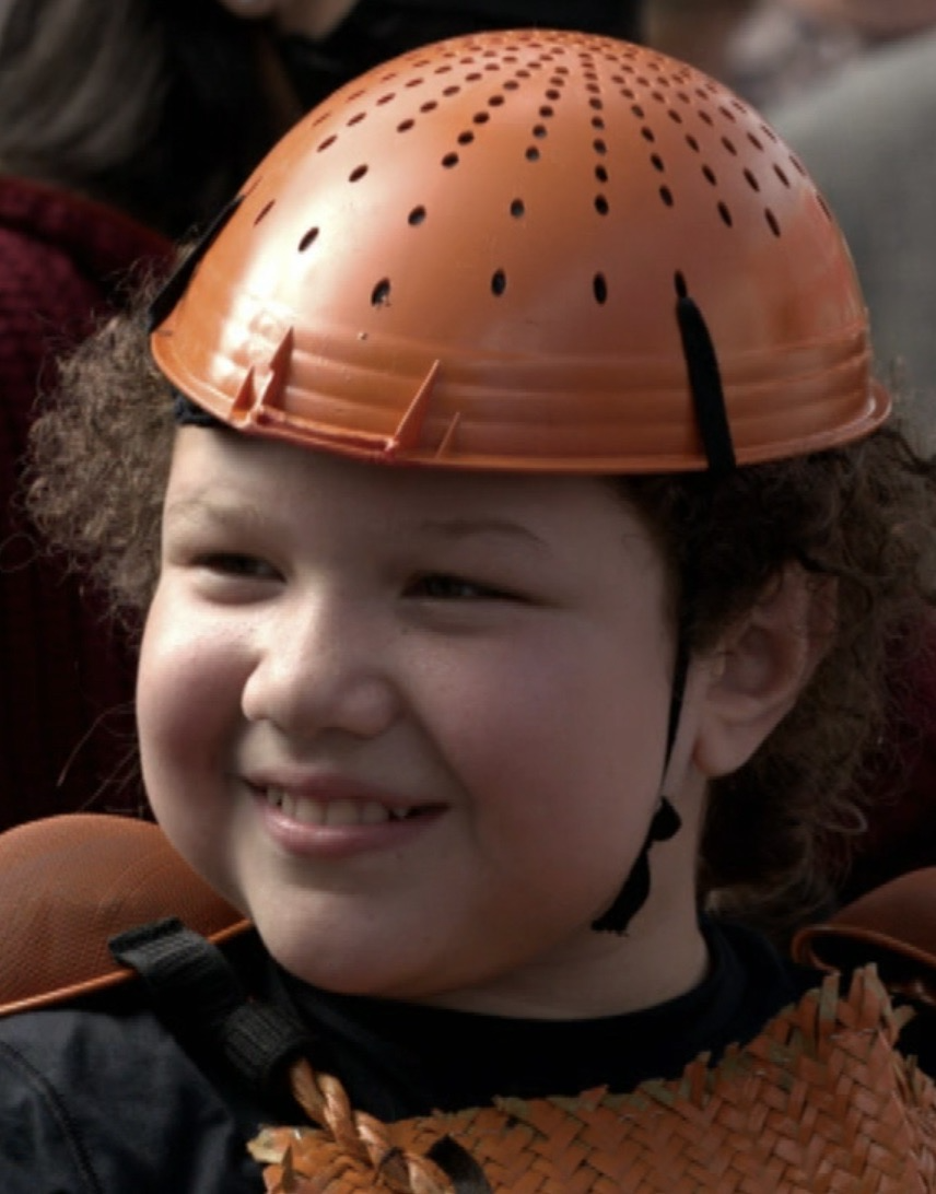 Celeste is among the many residents enjoying the Halloween festivities in the main square of the city. She is the lucky winner of the children's costume contest as announced by Pamela Milton, having dressed like hometown hero Mercer. Celeste is overjoyed and is invited up to the stage to take pictures. She is also given 10 lottery tickets, much to her delight and the crowd's awe.
