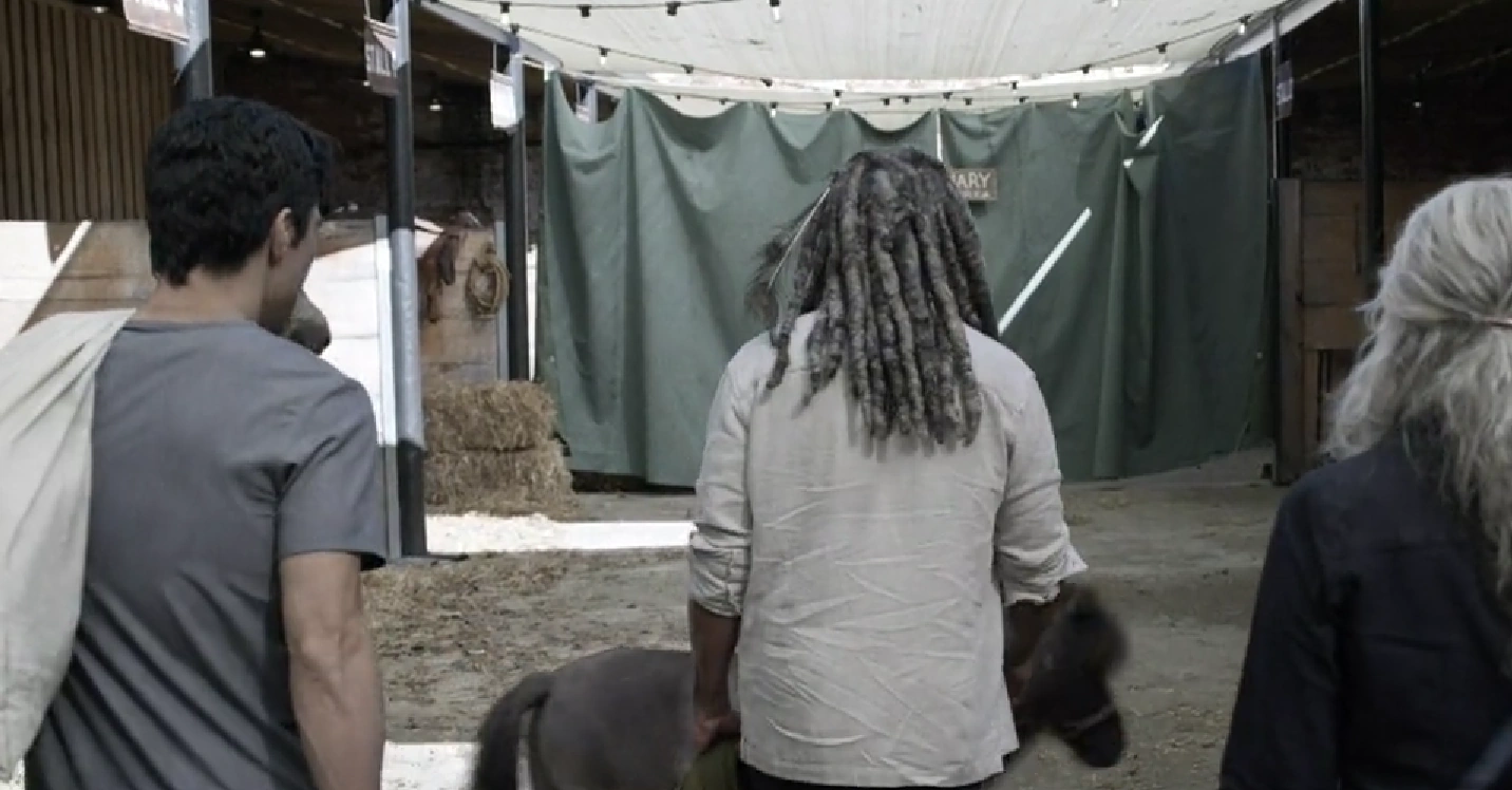 After convincing Carol to go with him, Ezekiel brings her to the vet clinic that he works at where outside behind the stables is a secret infirmary set up complete with operating tables, medical equipment, and volunteer nurses, including Theo from the Commonwealth Hospital . Ezekiel reveals that their friend Theresa from the Kingdom is awaiting the appendectomy procedure. Ezekiel credits Carol with inspiring him to build the secret infirmary to help all the people unable to afford healthcare or waste time on waiting lists. Theo informs Ezekiel that Theresa's appendix burst and that she needs to get to a hospital, but Tomi says there's no time and they proceed to operate on the Kingdom woman. Fortunately the surgery is a success as Tomi says her prognosis looks good and she is left to recover before returning home.