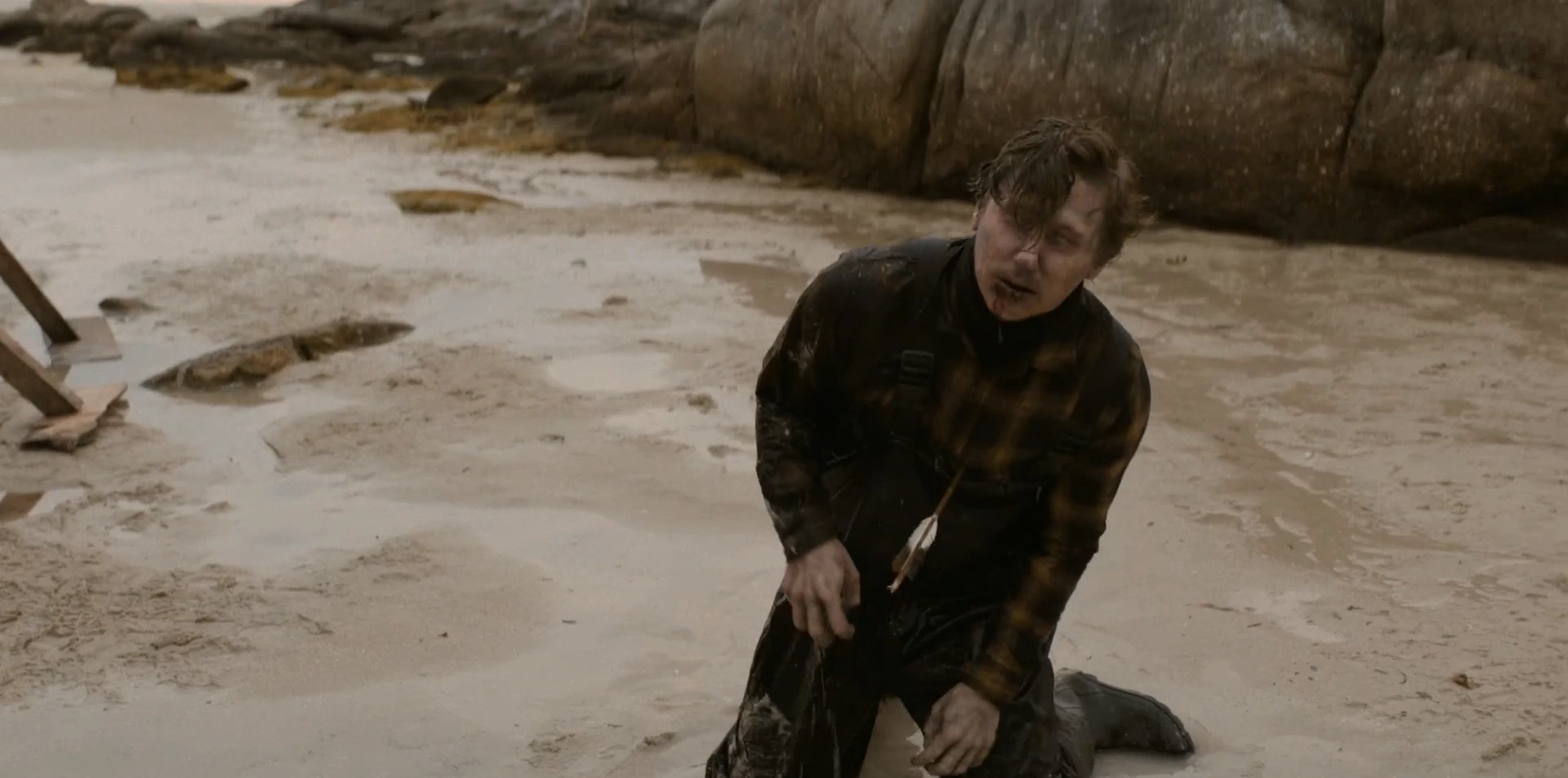 Cooper is shot in the chest with an arrow by a Primitivo. He subsequently reanimates.