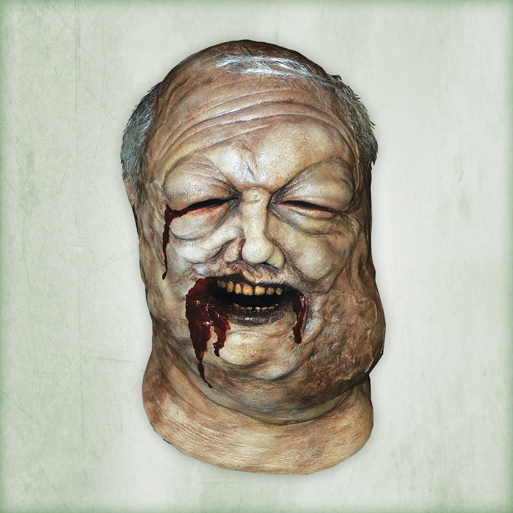 The Bloated Walker is a highly detailed face mask that includes swollen eye, cheeks, blood soaked mouth and nose. This officially licensed mask was sculpted by Neal Kennemore, the artist that sculpted a number of The Walking Dead Walkers for Universal Studios Halloween Horror Nights - The Walking Dead Maze, using hundreds of screen references.[3]