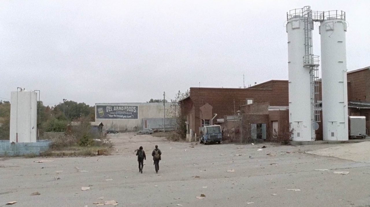 While out on a supply run, Daryl and Aaron come across the warehouse. They notice several walkers wandering around inside the fence. They clear out the walkers by luring them to the fence and enter.