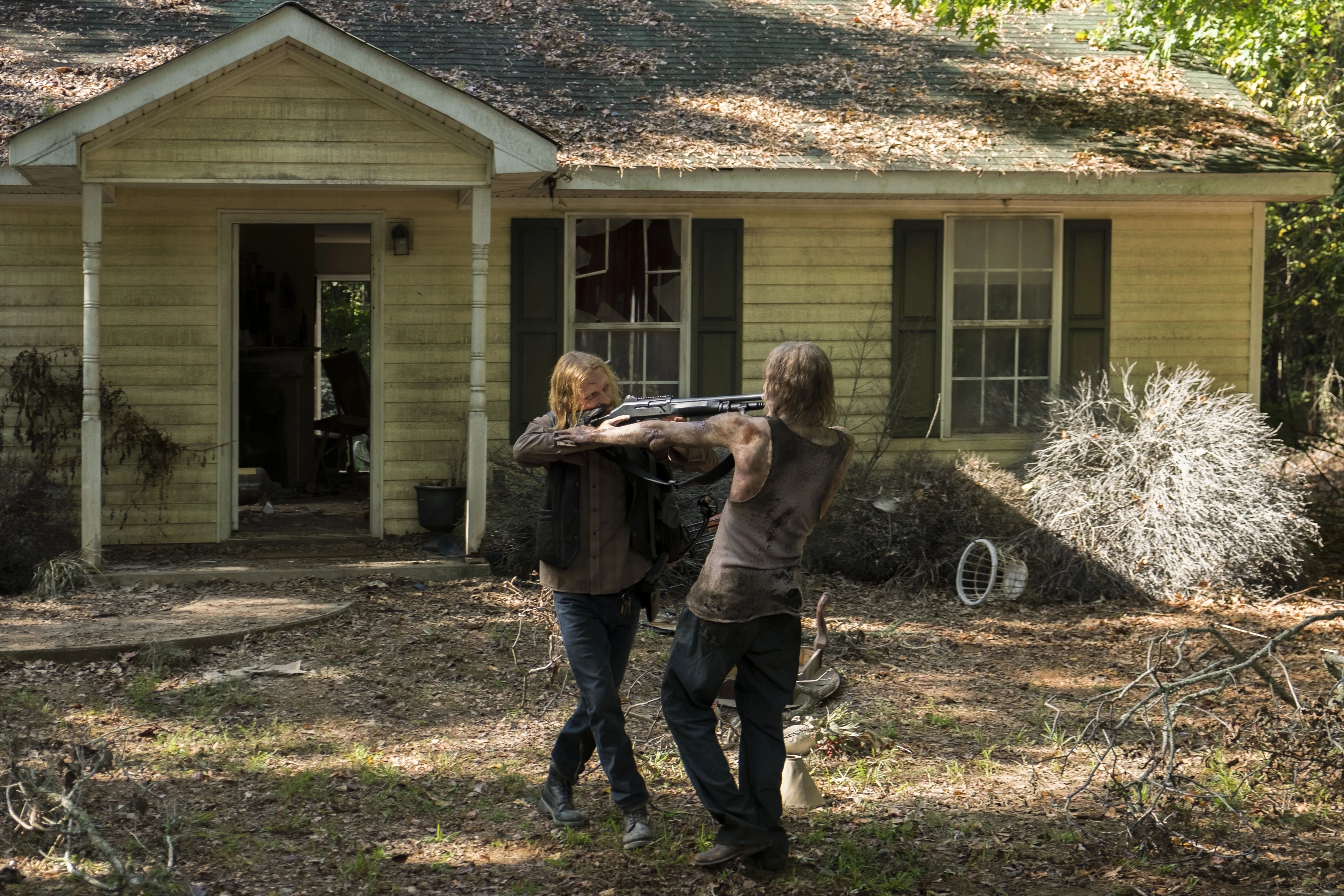 Dwight rides his motorcycle through a dead suburb; he parks in front of an abandoned house and enters. He looks for Sherry in their old home, where they agreed to rendezvous if they ever got separated. He gazes at the photo of himself and Sherry in happier times. He finds a farewell note from Sherry, along with her wedding rings. She admits to freeing Daryl and apologizes for forcing Dwight into Negan 's world . Dwight is shaken with emotion; he places the rings in his cigarette carton.