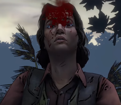If Michonne lets Pete go off on his own: While holding Samantha at gunpoint, Michonne will attempt to kill Gabby by shooting her with a flare gun, but she dodges, causing her to fall into the water.