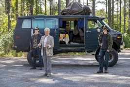Nearly two years after the outbreak, Georgie and her companions discover an agrarian community in Virginia, named Hilltop. Unbeknownst to them, the colony is in the middle of a conflict with another group, putting a great strain on their resources and creating an atmosphere of deep distrust. They leave a crate in a conspicuous place to safely make contact. Rosita retrieves the crate and gives Maggie the attached note, which offers them a "key to your future" in exchange for food and records. The note includes coordinates for a meeting point. Maggie worries that it's a trap, but Michonne suggests they investigate. Michonne, Maggie, Rosita and Enid drive to the designated meeting spot and find two women waiting by a van. A third woman wearing a suit steps out and introduces herself as Georgie. Her bodyguards are Hilda and Midge. Georgie explains that she can give Maggie valuable knowledge in exchange for food and records. Maggie takes them prisoner instead. Maggie gives Georgie a crate of food and records, and Georgie reciprocates with a sizable portion of the food in her van, having seen the desperate state of Hilltop and knowing that it needs the supplies more than she does. She gives Maggie a binder full of plans for windmills, water mills and other schematics to help create a community, the key to a future that she had been talking about. "Build this place up," she urges Maggie. And they leave the Hilltop.