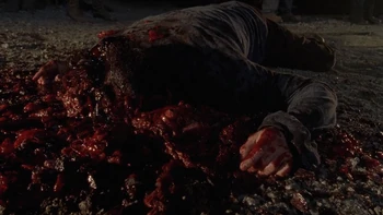 At the farm, Dale and T-Dog find a walker inside of one of the wells, and the group quickly rallied to devise a plan to rescue the walker from the well without contaminating the water. The survivors then lower down Glenn as bait. The plan goes awry when the old rusty water pump they’re using as a pulley breaks, sending Glenn within reach of the ravenous reverent. They save Glenn who, despite his panic, managed to lasso the corpulent creature. Unfortunately, the risk and subsequent struggle to haul out the zombie is all for nothing, as its rancid body gets snagged on the lip of the well only to rip in half, dropping its fetid bowels into the water below.