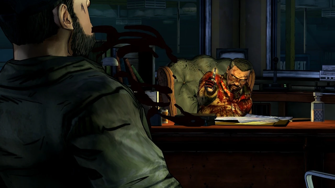 Hank goes to Carver's office to shut down the PA system that Clementine had activated. If Alvin was saved in "A House Divided", he takes a pistol from Carver's desk and sits at it when Hank enters. Hank shoots Alvin in the chest, but Alvin uses his last breath to return fire on Hank, similarly hitting him in the chest and killing him instantly.