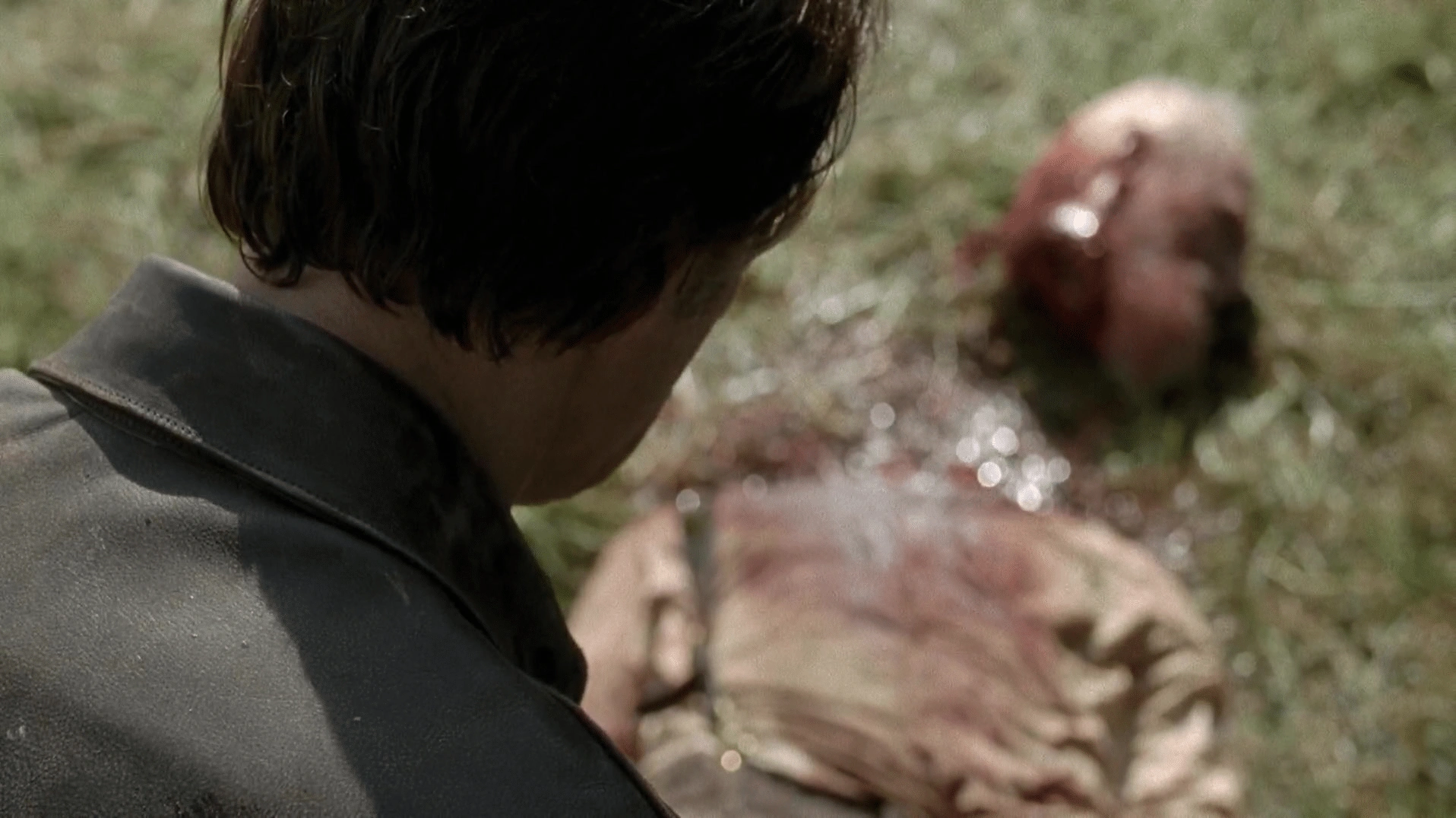Then, as a mortally wounded Hershel vainly drags himself away from the fight, slowly dying from lost blood, the Governor catches up with him and brutally hacks the rest of his neck, completely decapitating him in the process.