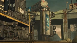 The highway serves as one of the main roads into the city of Savannah and overpasses the route 27 railroad tracks which is mainly used by train companies to get to and from the city. Once the signs of an outbreak began to show, the Federal Rescue Services placed a quarantine on the city of Savannah preventing people from entering or exiting the city. Access to the city was restricted and the FRS set up a road block on the highway overpass. However, during the chaos, a fuel tanker crashes into the barricade causing more of a vehicle pile up on the highway. Realizing that the barricade turned into a trap, civilians and officials abandoned the highway and took off in all directions.