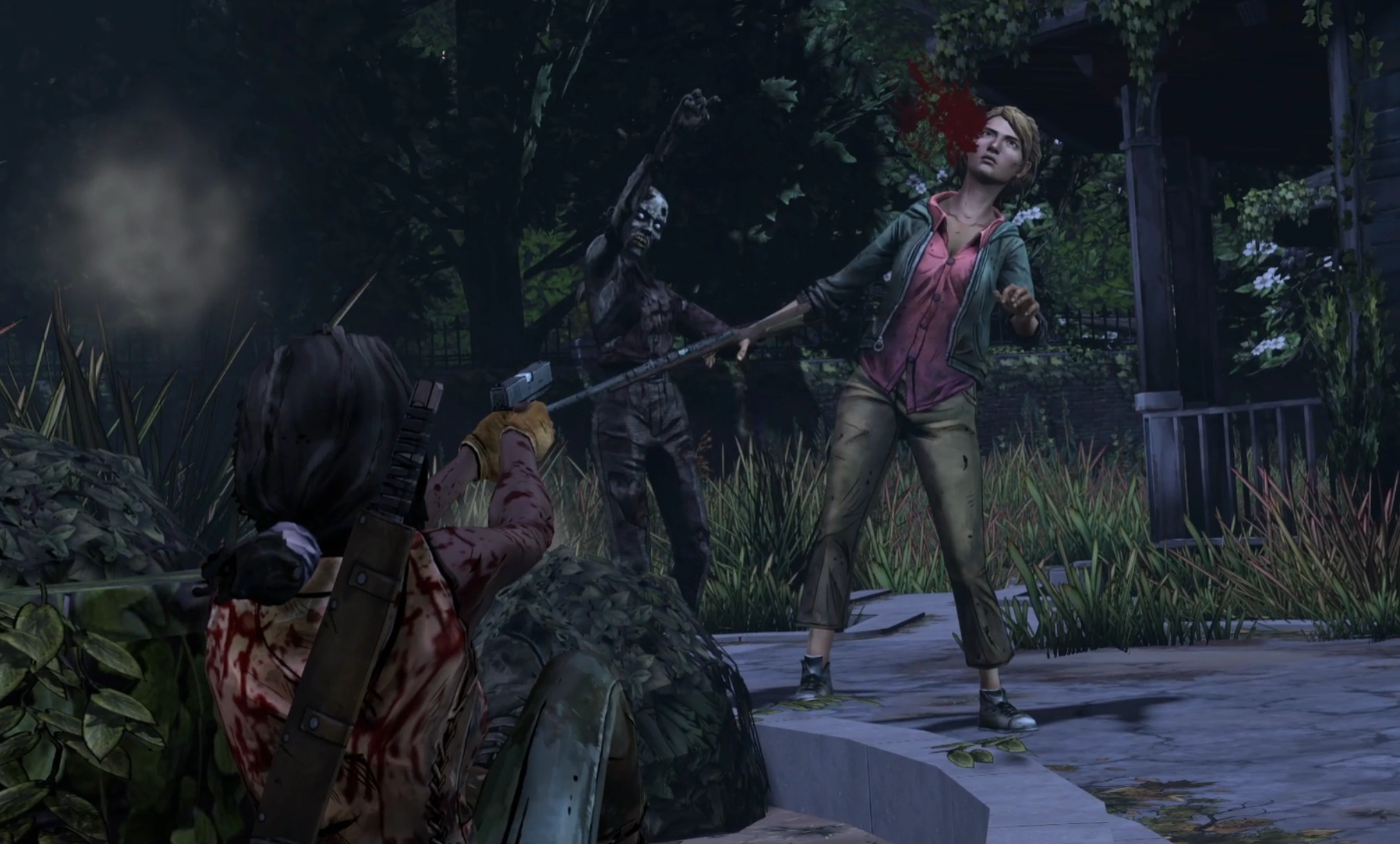 - Another example of this can be seen during "Ties That Bind - Part 1," where Javier can successfully headshot a zombie attacking Clementine outside Prescott, yet it still had to be finished off by the latter.